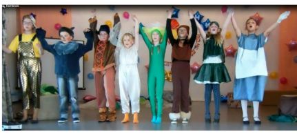подготовленных кем-то детей просто захотелось схватиться за голову (что, собственного говоря, и сделал сосед автора по даче, который посмотрел эту видеозапись) – от той бури чувств, которую пробуждал этот «простецкий», без изысков, спектакль. Он даже их не просто пробуждал, он ими, скажем так, хлестал через экран и буквально выливал из неизвестной и далекой маленькой студии в