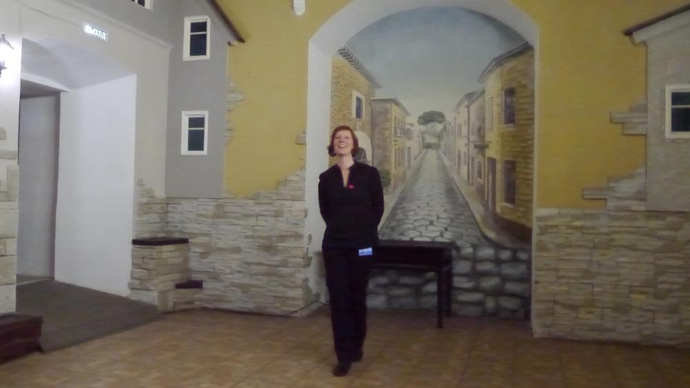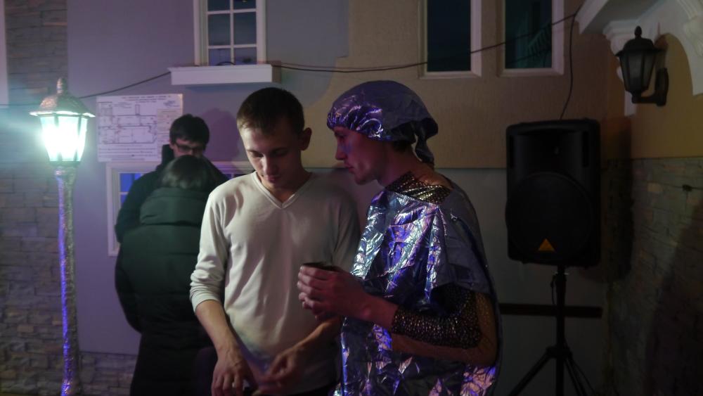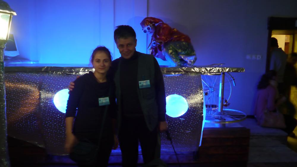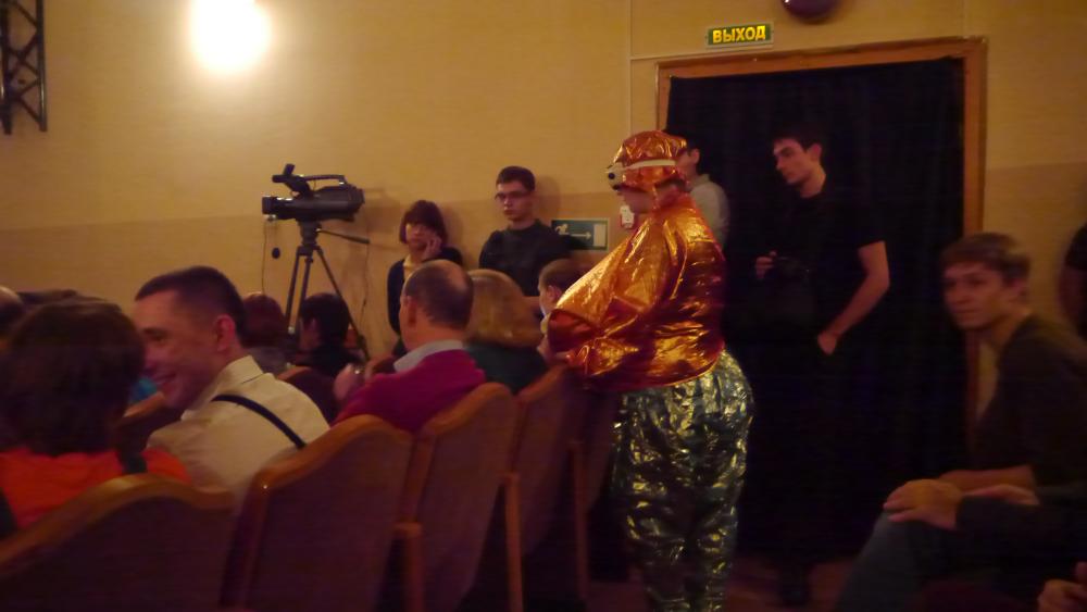 Зрелищный центр "Аэлита" встретил нас в холле загадочной конструкцией и еще более загадочным персонажем: