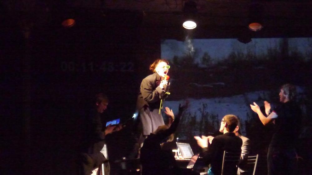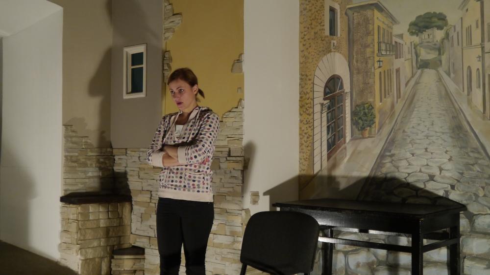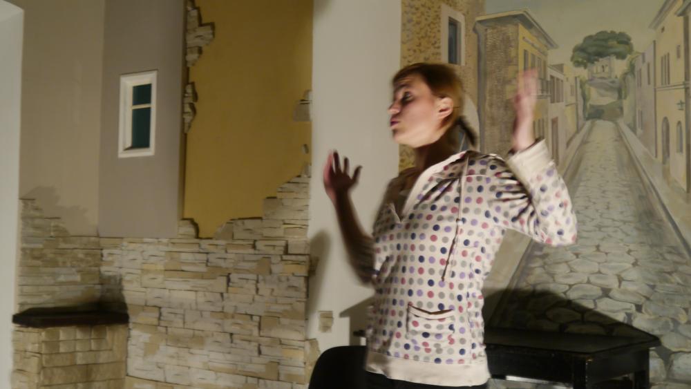 В Малом зале "Аэлиты" моноспектакль "Наташина мечта" по монологу Ярославы Пулинович. Студия "109" (Новосибирск). Режиссер Алексей Грищенко. В роли Наташи - Аня Егорова.