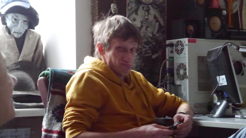 И наш старый знакомый кукольник Юрий Орлов: в данный момент он без своего сценического партнера и поэтому, кажется, решил его изобразить. Вроде похоже: